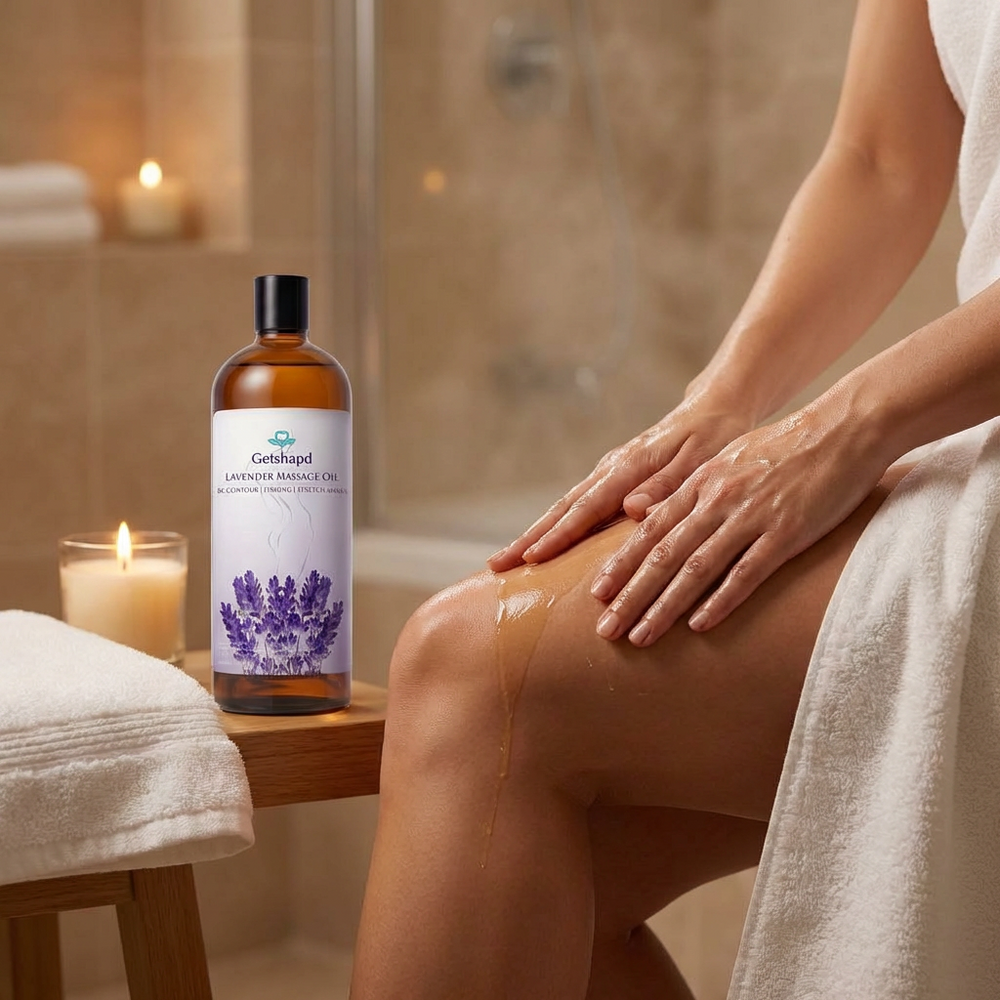 Our Anti-Cellulite Lavender Oil uses a powerful blend of plant-based ingredients to visibly reduce the appearance of cellulite and stretch marks in as little as 8 weeks. The lightweight, fast-absorbing formula works deep beneath the skin's surface to improve elasticity, smooth texture, and promote firmer-looking skin.