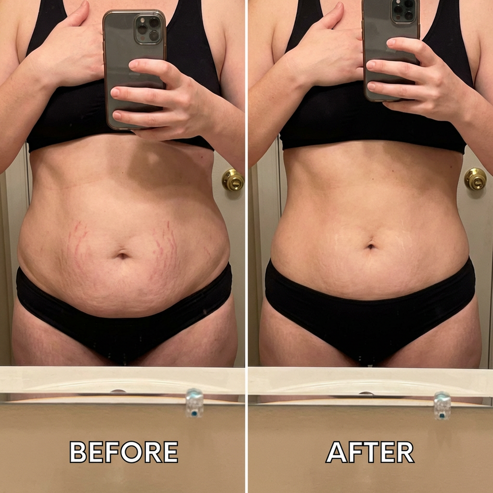 "I'm 8 months postpartum and my stomach looked like a roadmap. I wasn't trying to get my 'pre-baby body back' or whatever - I just wanted to feel like myself again when I caught my reflection. Been using this every night after my shower for about 6 weeks now. The stretch marks are still there but they've faded so much, and my skin actually feels like skin again instead of crepe paper. Also the lavender smell knocks me out - which as a new mom, trust me, that's a bonus."