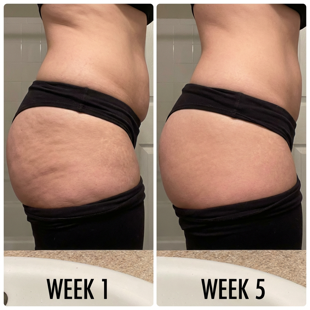 "Down 65 pounds since January. So proud of myself but honestly the loose skin on my thighs was making me not even want to wear shorts. My trainer mentioned this might help with skin elasticity so I figured why not. It's been 2 months - the texture has definitely improved and I don't feel like I need to hide anymore. Applied it this morning and finally wore shorts to the gym. Small win but it felt huge."